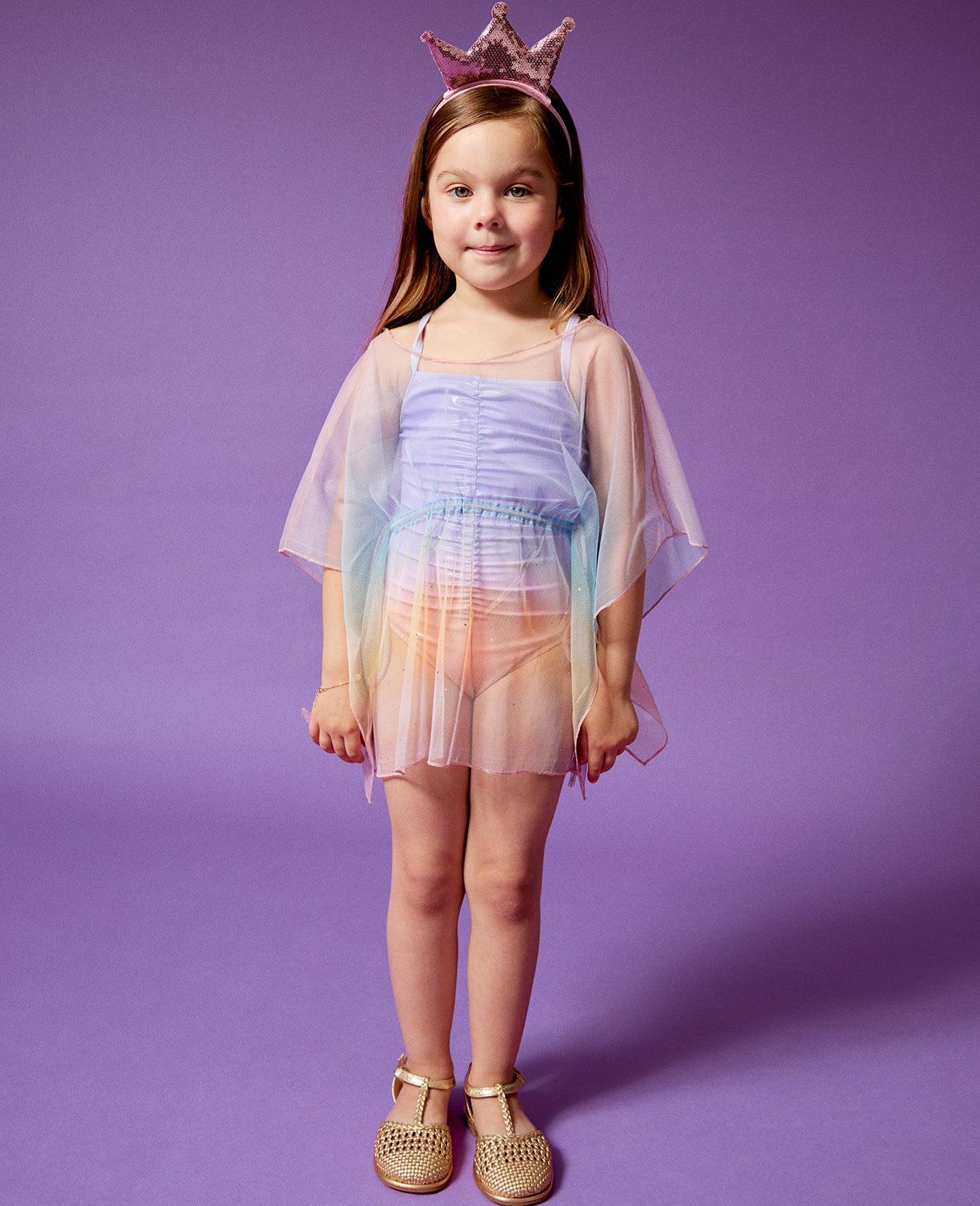 Ruched metallic multicolor kids swimsuit